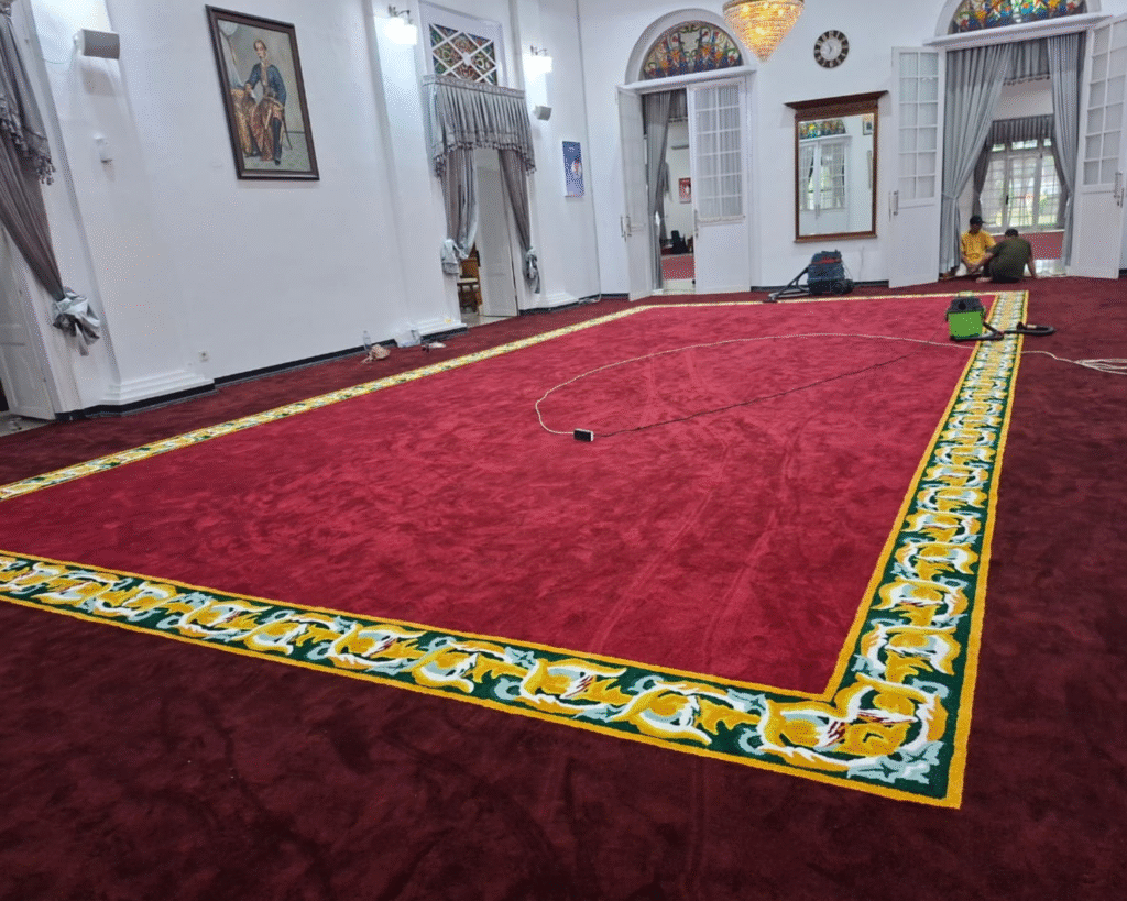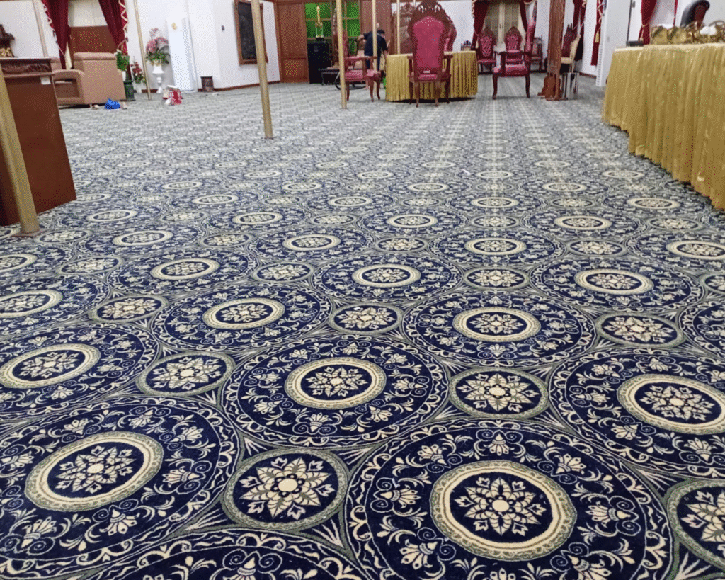 Karpet Custom Premium untuk Masjid, Hotel, dan Gedung Pemerintah — Sesuai Ukuran, Warna, dan Motif Anda.