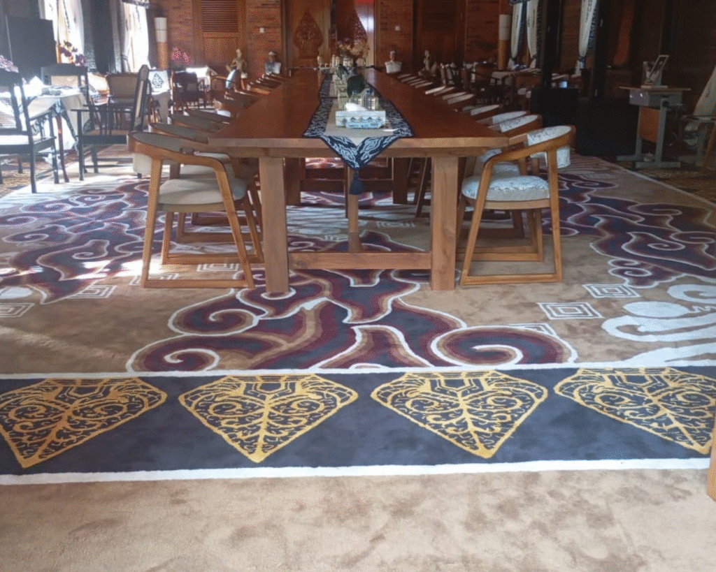 Karpet premium yang memperkuat kesan formal dan resmi. Motif dan warna dapat disesuaikan agar sesuai identitas lembaga atau acara seremonial.